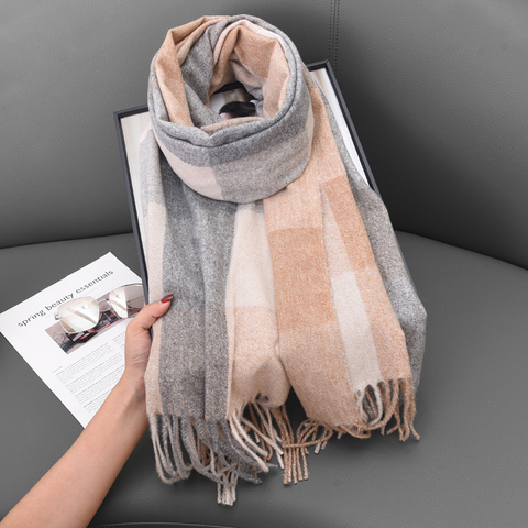 Sciarpa invernale in Cashmere da donna di marca di lusso firmate calde sciarpe a quadri mantella Pashmina scialle da donna sciarpa spessa Foulard